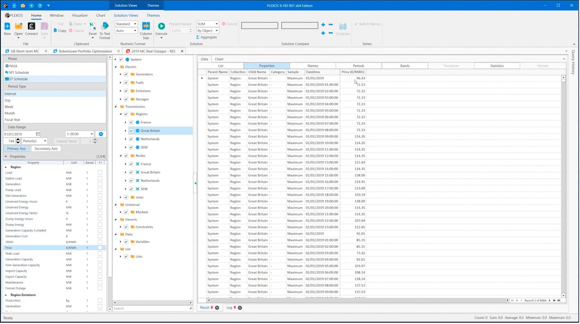 After configuring the scenario, you wish to examine, PLEXOS emulates the principles of the market by meeting demand and required reserve capacity at least cost. Configure and analyze any market time step from hourly, to five-minute increments, and across any time horizon from very short-term horizons to thirty years. Examine market prices at different regions and points across the grid.